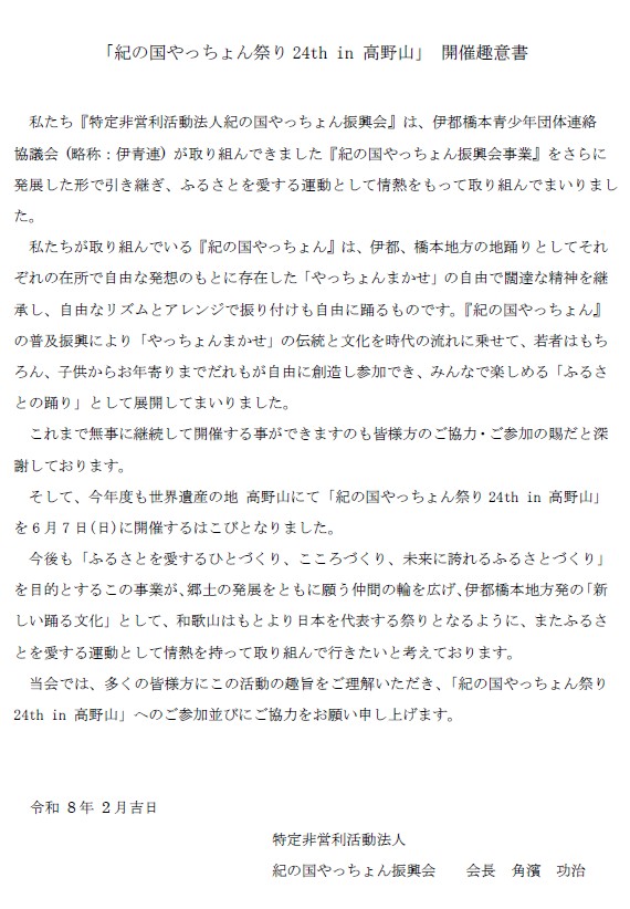 「紀の国やっちょん祭り24th in 高野山」 2026/6/7(日)開催決定!!